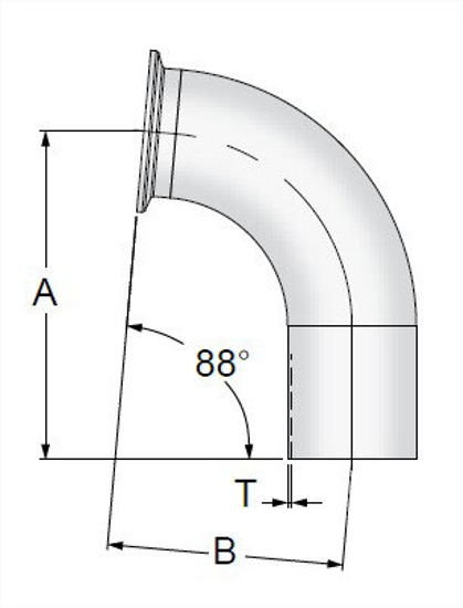 TE2C88 - BPE Clamp X AWF 88 Degree Elbow MaxPure 316L